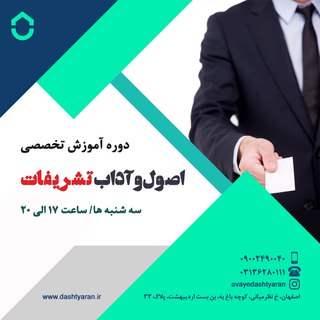 آیندهی حرفهایتان را با دوره تخصصی اصول و آداب تشریفات متحول کنید! این دوره شما را به مهارتهای بینظیر در مدیریت مراسم و ارتباطات اجتماعی مجهز میکند. فرصت را از دست ندهید و با کسب این مهارتها، درخشانترین فرصتهای شغلی را به سوی خود جذب کنید. ثبتنام کنید و آیندهتان را بسازید!